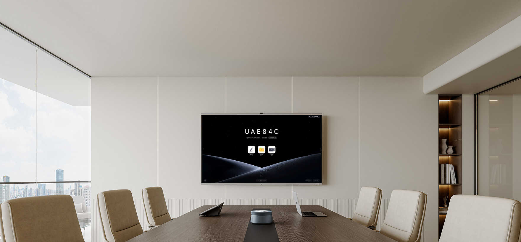 物联生态:会议平板通过各种NB-loT模块连接智能办公设备(如温控、灯光);
